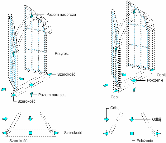 Umożliwia zmianę wysokości okna istnieje możliwość podjęcia decyzji, czy ma być zmieniany poziom parapetu lub poziom nadproża. |