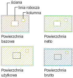 | Powierzchnia wspólna kondygnacji (FCA) | Umywalnie, portiernie, pomieszczenia elektryczne, pomieszczenia telefoniczne, maszynownie, korytarze wind i korytarze publiczne |