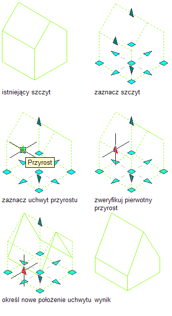 Edycja elementu bryłowego typu szczyt za pomocą uchwytu przyrostu