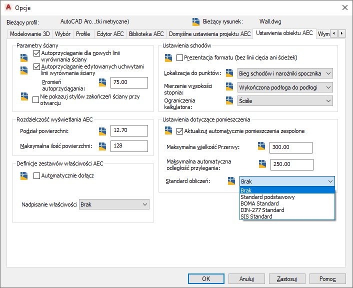 Trzeba zdefiniować nową klasę w oparciu o klasę AecSpaceOffsetStandard. Klasa ta będzie szkieletem zarządzającym pojedynczymi regułami i punktami wejścia wywoływanymi przez program zestaw narzędzi AutoCAD Architecture 2027 podczas wczytywania i stosowania normy.