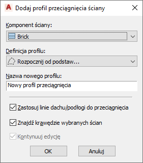 Dodanie profilu przeciągnięcia do ściany