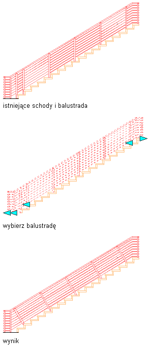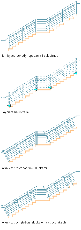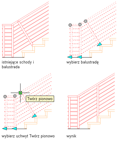 Gdy została określona prostopadła orientacja balustrady, można użyć uchwytów, aby zmienić orientację pierwszego i ostatniego słupka na pionową.
