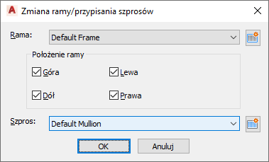 | zmodyfikować ramę zaznaczonej siatki | zaznacz definicję ramy i kliknij przycisk OK. |