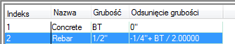 Jednakże jeśli pręt zbrojeniowy ma zostać umieszczony pośrodku komponentu betonowego niezależnie od jego grubości, komponenty można skonfigurować tak, aby grubość betonu była określona jako zmienna (Grubość bazowa), a odstęp komponentu pręta zbrojeniowego jako połowa grubości betonu minus połowa grubości pręta zbrojeniowego (1/4 cala).