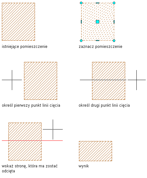 Procedura ta służy do obcięcia wyciągniętego pomieszczenia 3D za pomocą linii cięcia.