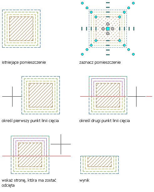 Ostrzeżenie: Przed obcięciem pomieszczenia z ręcznie określonymi odsunięciami obwiedni należy upewnić się, że aktywne są wszystkie obwiednie. Nieaktywne obwiednie nie zostaną ucięte.