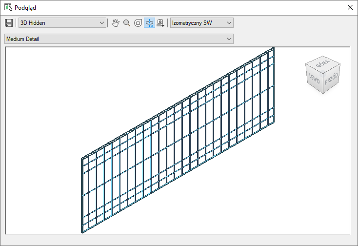 W oknie Podgląd roboczy wyświetlany jest obiekt w reprezentacji wyświetlania.