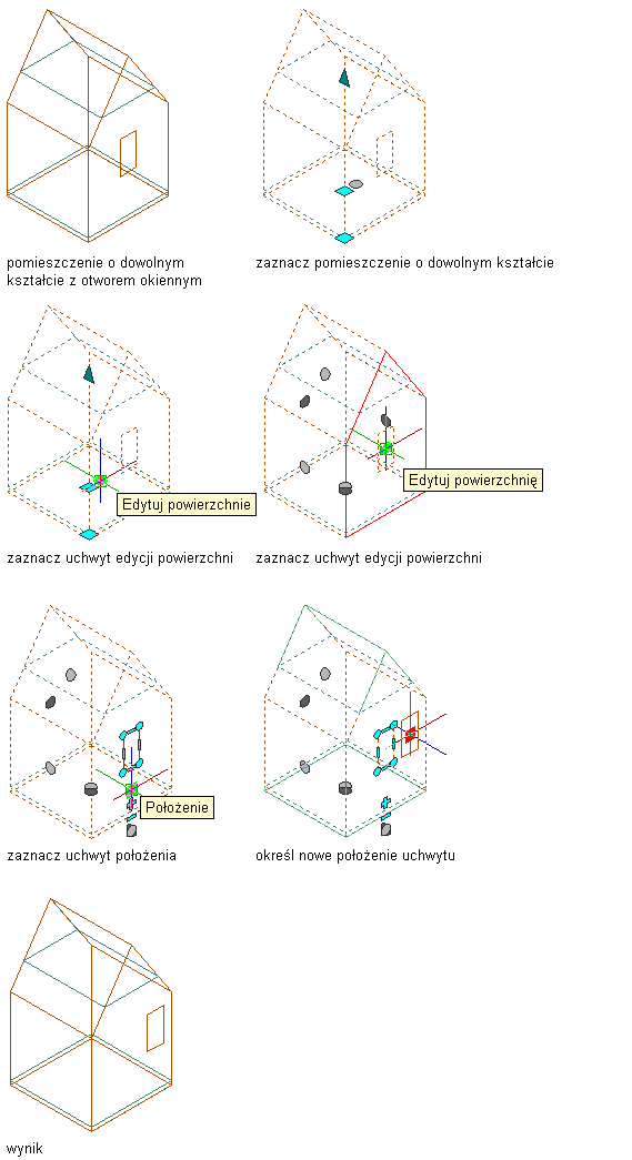 Procedura ta służy do przesuwania otworu w na powierzchni pomieszczenia 3D o dowolnym kształcie.