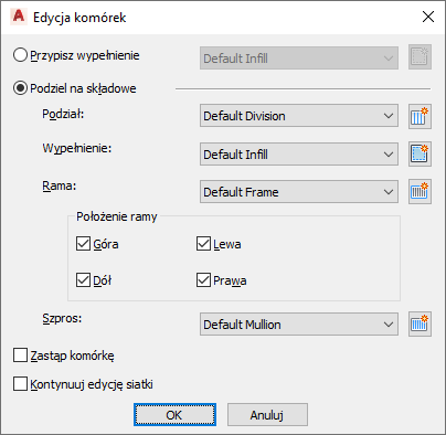 | wybrać definicję szprosu dla siatki utworzonej po podzieleniu komórki na składowe | zaznacz żądaną definicję szprosu. |