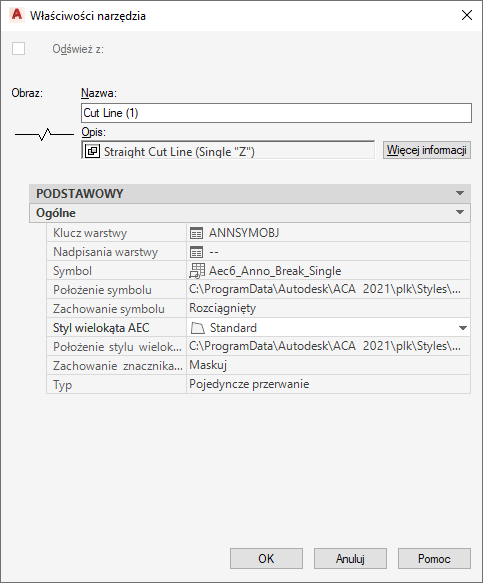 | Styl wielokąta AEC | Określa, czy znacznik przerwania ma właściwości maskowania. Jeżeli ta właściwość nie jest wybrana (--), styl przyjmuje wartości standardowe. |