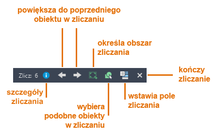 Gdy zliczanie jest aktywne, u góry obszaru rysunku wyświetlany jest pasek narzędzi Zlicz.