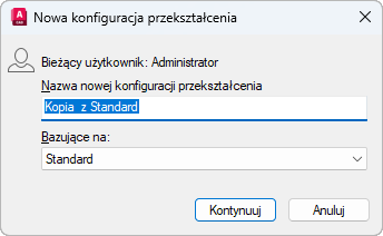 Okno dialogowe Nowa konfiguracja przekształcenia