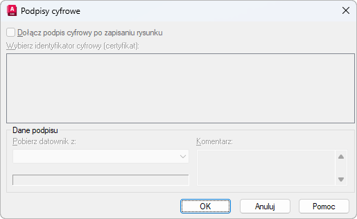 Okno dialogowe Podpisy cyfrowe