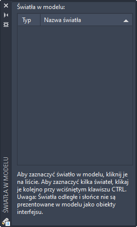 Umożliwia wyświetlanie listy różnych typów świateł z ich unikatowymi nazwami użytymi w rysunku.