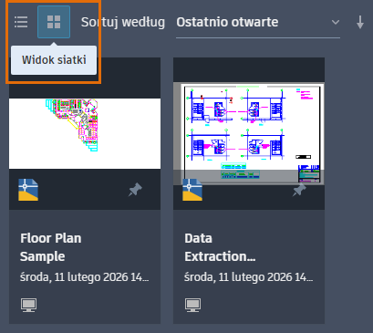 - Powyżej dokumentów wybierz widok siatki, w którym wyświetlane są miniatury i tekst, ewentualnie widok listy, w którym wyświetlany jest tylko tekst.