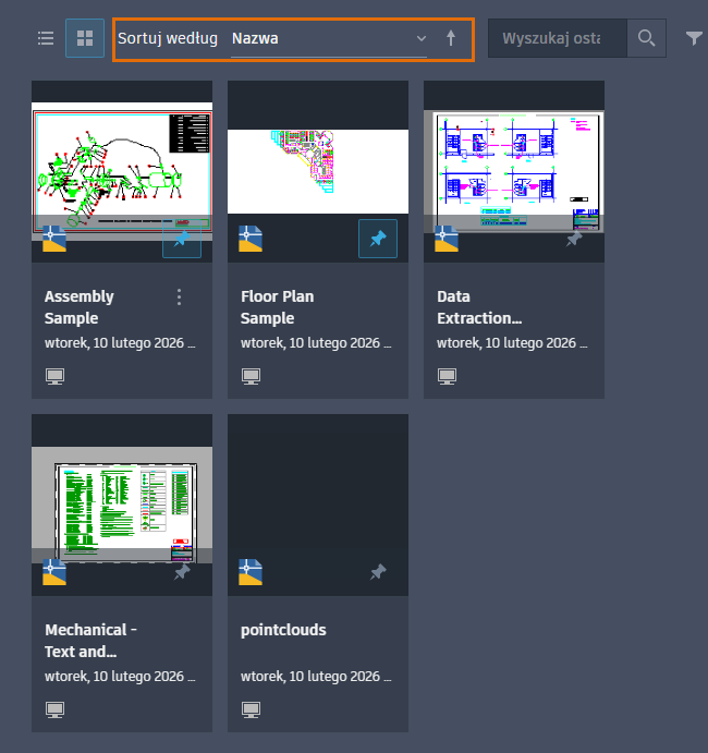 Ostatnio używane dokumenty można sortować i przeszukiwać.
