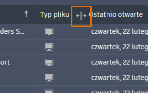 Aby dopasować szerokości kolumn, przeciągnij pionowy pasek między nagłówkami kolumn.