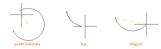 Podanie liczby dodatniej powoduje rysowanie segmentu łukowego przeciwnie do kierunku ruchu wskazówek zegara. Podanie liczby ujemnej — zgodnie z kierunkiem ruchu wskazówek zegara.