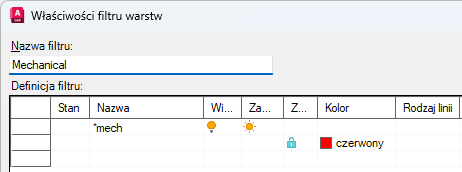 Wprowadź nazwę warstwy albo wpisz część nazwy warstwy razem ze standardowymi symbolami wieloznacznymi. Na przykład wprowadź *mech*, aby objąć wszystkie warstwy, które w nazwie mają ciąg liter mech.