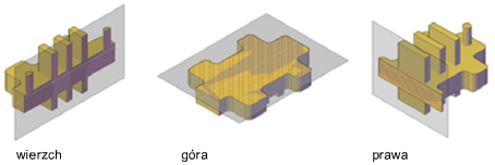 Przekroje można dopasowywać do określonej orientacji prostokątnej bieżącego układu LUW, np. przód, tył, dół, góra, prawa lub lewa.