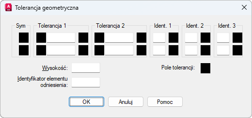 Po wybraniu charakterystycznych symboli geometrycznych zamykane jest okno dialogowe Tolerancja geometryczna i wyświetlany poniższy monit: