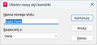 Przywraca okno dialogowe Nowy styl tabeli, w którym można zdefiniować nowy styl komórki.