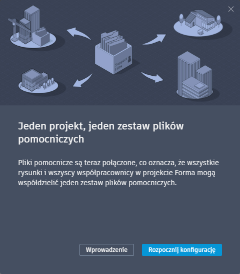 - W oknie dialogowym „Jeden projekt, jeden zestaw plików pomocniczych” kliknij przycisk Rozpocznij konfigurację.