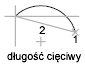 Rysuje mniejszy łuk, przeciwnie do kierunku ruchu wskazówek zegara, od początku (1) do końca (2). Jeśli promień jest ujemny, rysowany jest większy łuk.