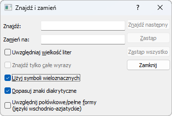 Zostanie wyświetlone okno dialogowe Znajdź i zamień.