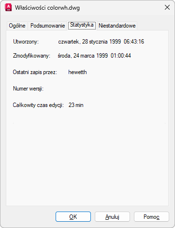 Te właściwości pliku ułatwiają wyszukiwanie rysunków utworzonych lub zmodyfikowanych w określonym czasie.