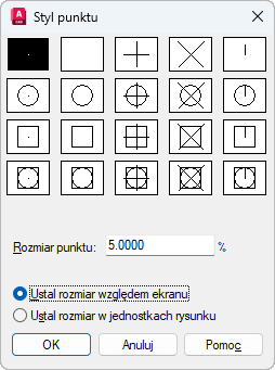 Styl punktu jest przechowywany w zmiennej systemowej PDMODE.