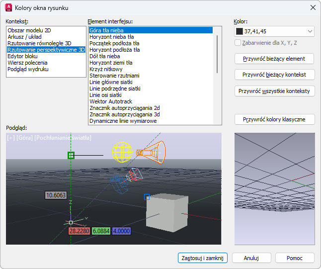Okno dialogowe Kolory okna rysunku