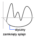 Zamyka splajn, definiując ostatni punkt, tak aby pokrywał się z pierwszym. Domyślnie zamknięte splajny są okresowe, zachowując ciągłość krzywizny (C2) wzdłuż całej pętli.
