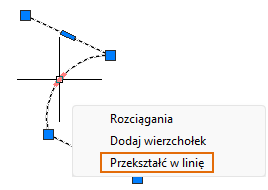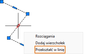 Kilka opcji staje się dostępnych po wybraniu polilinii i najechaniu kursorem na uchwyty.