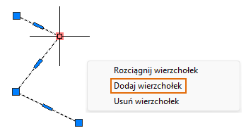 Wierzchołek zostanie dodany do polilinii wychodzącej z wybranego uchwytu końcowego.