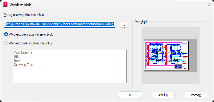 Wybierz plik rysunku jako blok