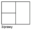 Opcje Poziomo i Pionowo dzielą obszar na trzy równe części. Pozostałe opcje dzielą obszar na trzy rzutnie: jedną dużą i dwie mniejsze. Opcje Nad, poD, Lewo i pRawo określają miejsce umieszczenia większej rzutni.