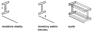 Metoda ta pozwala na utworzenie siatki jako serii równoległych wieloboków biegnących wzdłuż określonej ścieżki. Oryginalny obiekt i wektor kierunkowy muszą już być narysowane, jak pokazano na następujących ilustracjach.