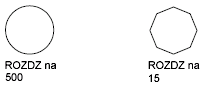 Polecenie ROZDZ steruje wyglądem okręgów, łuków, splajnów i zakrzywionych polilinii za pomocą krótkich wektorów. Im większa liczba wektorów, tym bardziej są wygładzony wygląd zaokrąglonych obiektów. Na przykład mały okrąg po powiększeniu może przypominać wielobok. Za pomocą polecenia ROZDZ można zwiększyć wygładzanie okręgu.