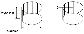 Definiuje średnicę podstawy walca za pomocą określenia dwóch punktów.