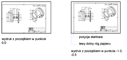 Odsunięcie wydruku określa odsunięcie obszaru wydruku względem lewego dolnego narożnika (początek) obszaru drukowania lub krawędzi papieru.