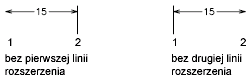 Ukrywa wyświetlenie linii wymiarowych gdy wychodzą poza linie pomocnicze. Linia wymiarowa 1 przesłania pierwszą linię wymiarową; Linia wymiarowa 2 przesłania drugą linię wymiarową. (DIMSD1 i DIMSD2 — zmienne systemowe)