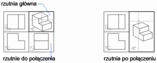 Dwie rzutnie modelu muszą współdzielić krawędź o tej samej długości. Rzutnia wynikowa dziedziczy widok rzutni głównej.