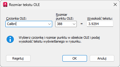 Obiekt OLE zostanie automatycznie przeskalowany, stosowanie do rozmiaru tekstu.