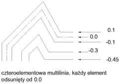 Wyświetla wszystkie elementy bieżącego stylu multilinii. Każdy element stylu definiowany jest jego odsunięciem od środka multilinii, jego kolorem i rodzajem linii. Elementy są zawsze wyświetlane w kolejności malejącej ich odsunięć.