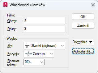 Określa format stylu dla tekstu piętrowego: ułamki piętrowe, ułamki ukośne, tolerancję i ułamki dziesiętne.
