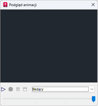 Odtwarza podgląd animacji. Przycisk Odtwórz jest nieaktywny, gdy animacja jest już odtwarzana.