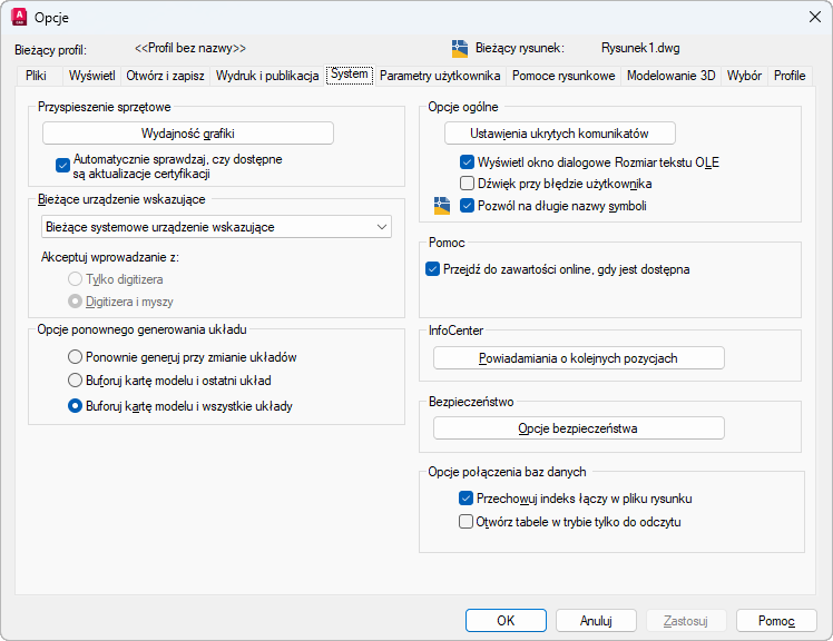 Niektóre opcje pokazane powyżej nie są dostępne w programie AutoCAD LT.