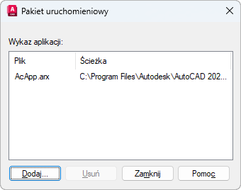 Dodaje pliki aplikacji do pakietu uruchomieniowego i usuwa je z niego. Są to aplikacje, które są wczytywane przy każdym uruchomieniu produktu.
