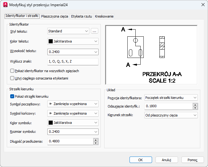 Karta Identyfikator i strzałki (Menedżer stylów przekroju)